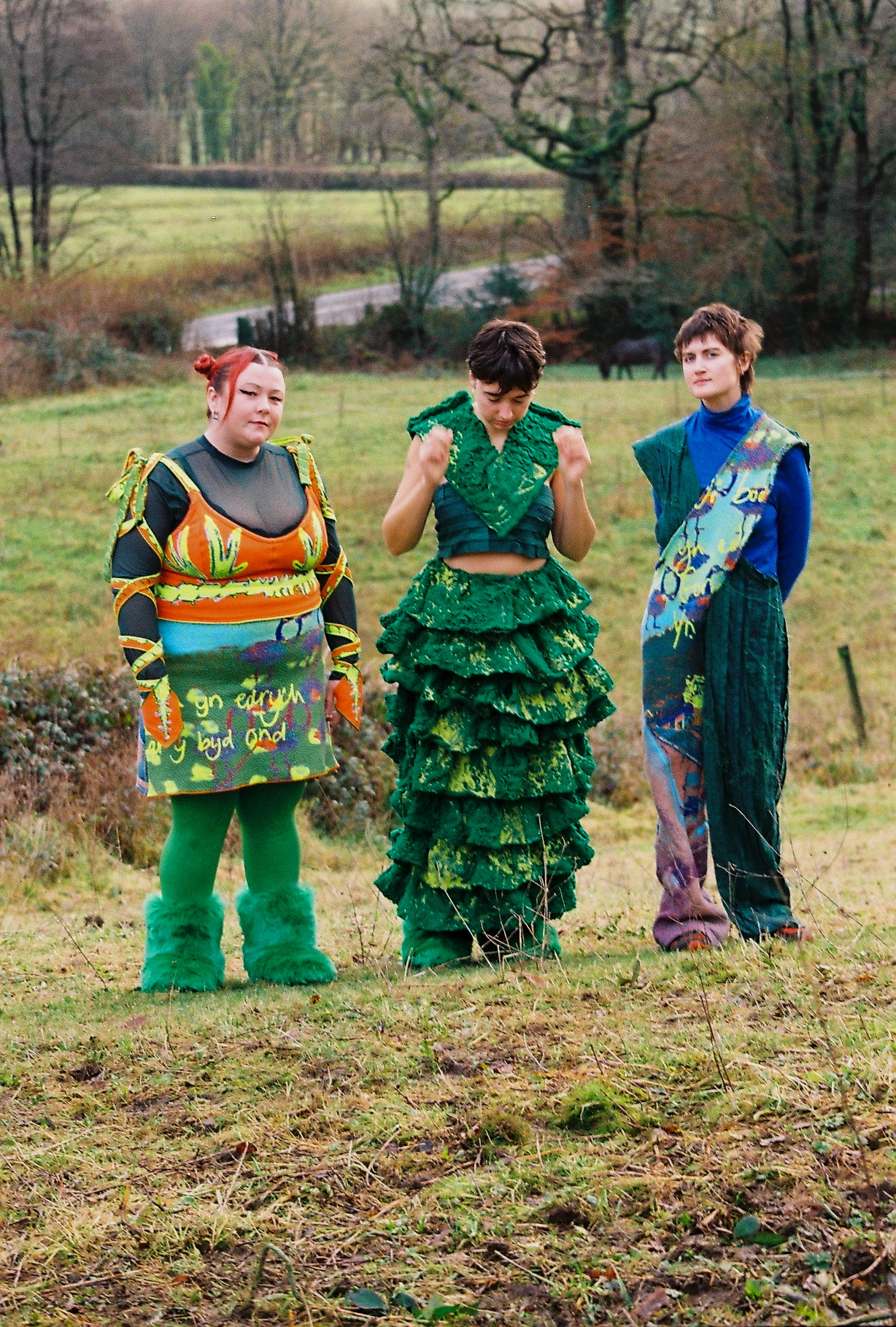 The outcome of this research was a short experimental film, shot on location in Wales, with Adwaith wearing costumes I have made.